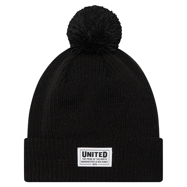 Men's New Era Black Manchester United Stitch Patch Cuffed Knit Hat with Pom
