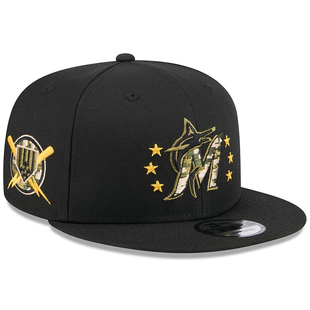 Men's New Era Black Miami Marlins 2024 Armed Forces Day 9FIFTY Snapback Hat