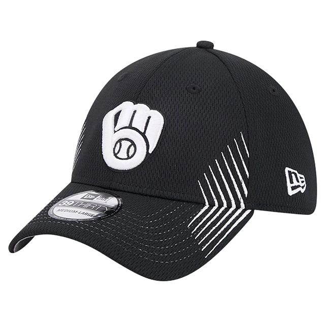 Men's New Era Black Milwaukee Brewers Active Dash Mark 39THIRTY Flex Hat
