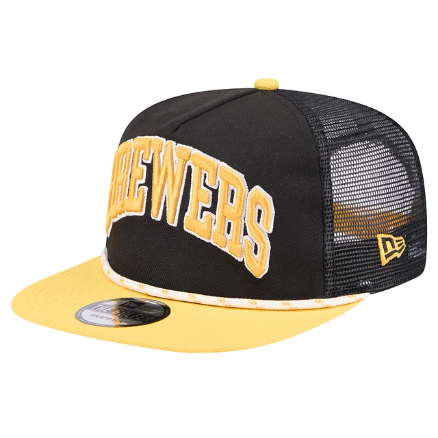 Men's New Era Black Milwaukee Brewers Throwback Meshback Golfer Hat