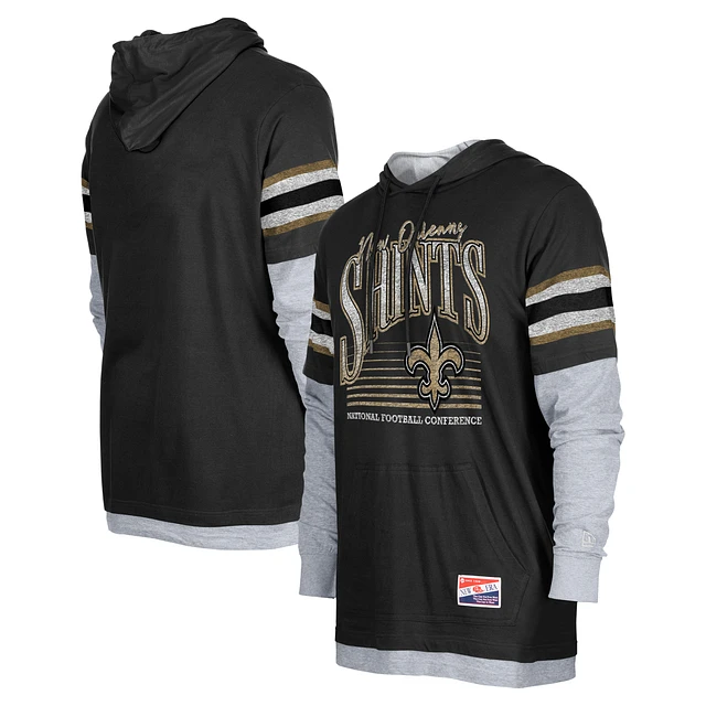Men's New Era Black Orleans Saints Twofer Long Sleeve Hooded T-Shirt