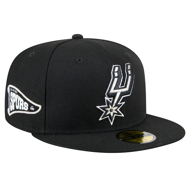Men's New Era Black San Antonio Spurs Throwback Pennant 59FIFTY Fitted Hat