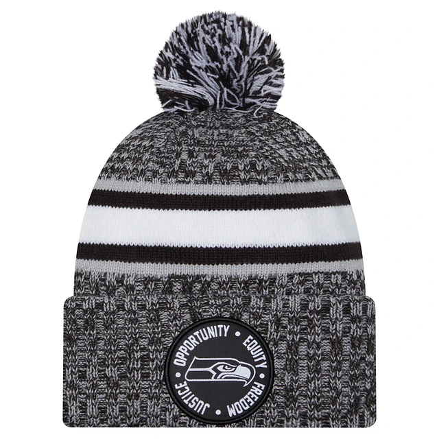 Men's New Era Black Seattle Seahawks Inspire Change Cuffed Knit Hat with Pom