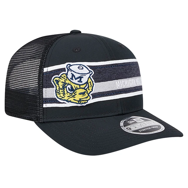 Men's New Era Black/Navy Michigan Wolverines Striped 9SEVENTY Trucker Stretch-Snap Adjustable Hat
