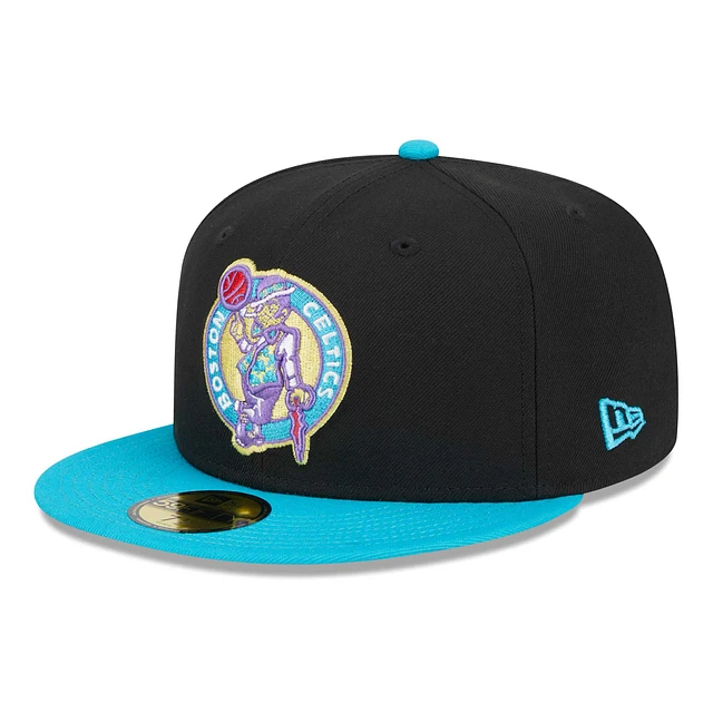 Men's New Era Black/Turquoise Boston Celtics Arcade Scheme 59FIFTY Fitted Hat