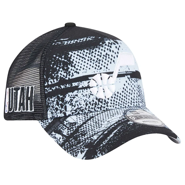 Men's New Era Black/White Utah Jazz Tip Off A-Frame Trucker 9FORTY Adjustable Hat