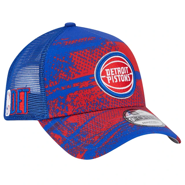 Men's New Era Blue/Red Detroit Pistons Tip Off A-Frame Trucker 9FORTY Adjustable Hat
