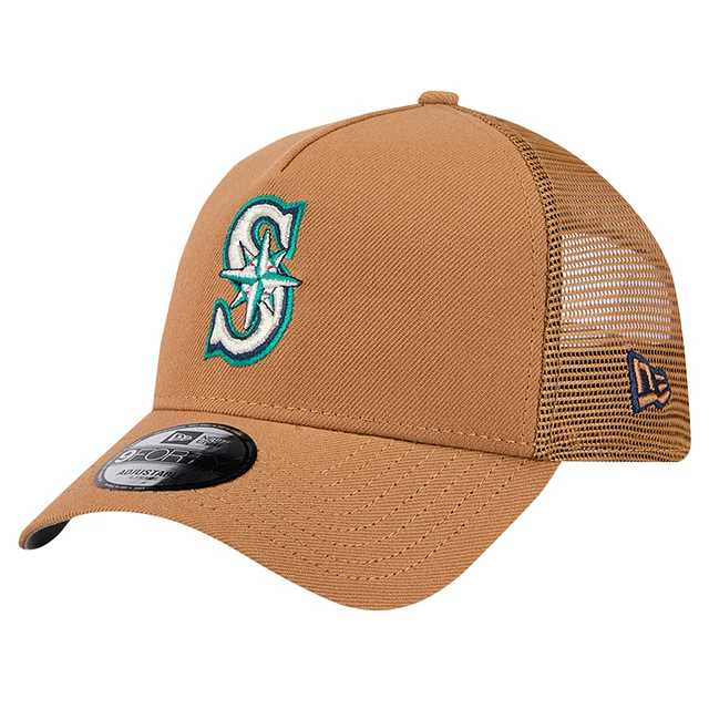 Men's New Era Brown Seattle Mariners A-Frame Trucker 9FORTY Adjustable Hat