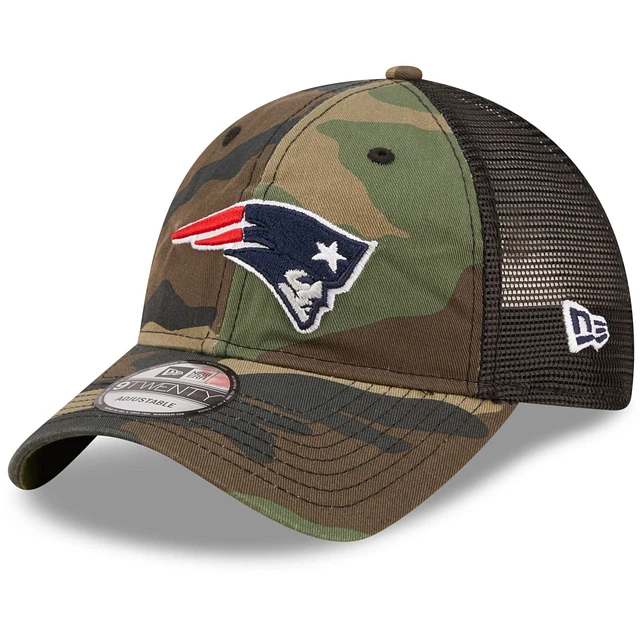 Men's New Era Camo/Black New England Patriots Basic 9TWENTY Trucker Snapback Hat