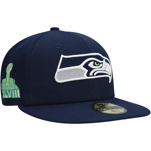 Men's New Era College Navy Seattle Seahawks Super Bowl XLVIII Citrus Pop 59FIFTY Fitted Hat