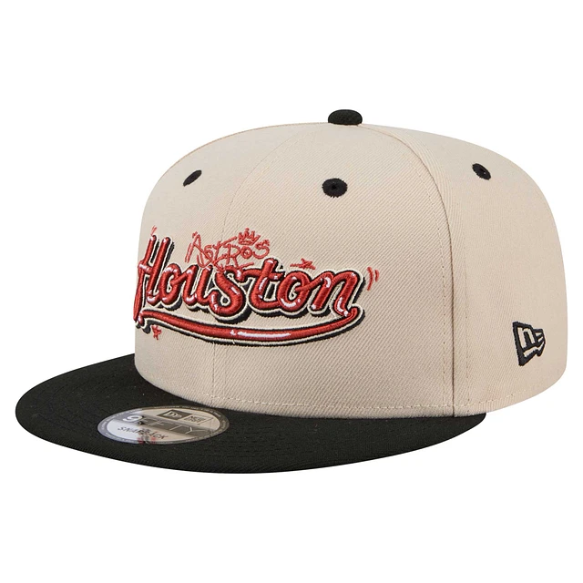 Men's New Era Cream/Black Houston Astros Team Art 9FIFTY Snapback Hat