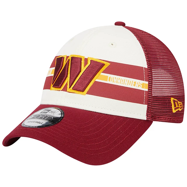Men's New Era Cream/Burgundy Washington Commanders Team Stripe Trucker 9FORTY Snapback Hat