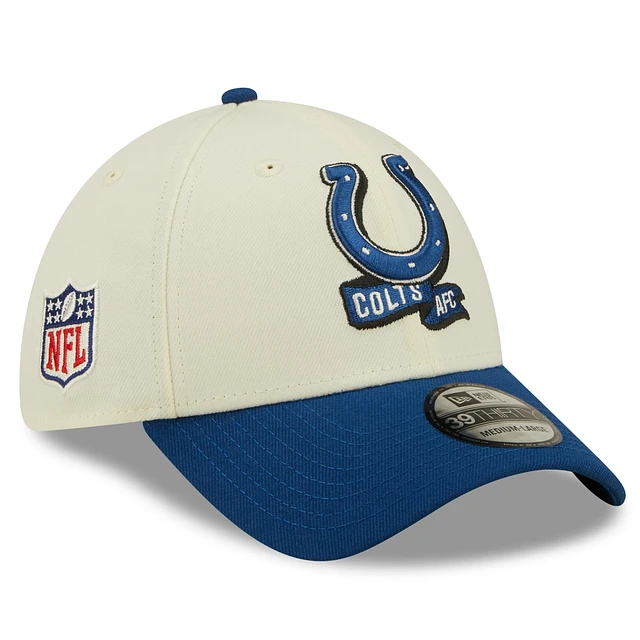 Men's New Era Cream/Royal Indianapolis Colts 2022 Sideline - 39THIRTY 2-Tone Flex Hat