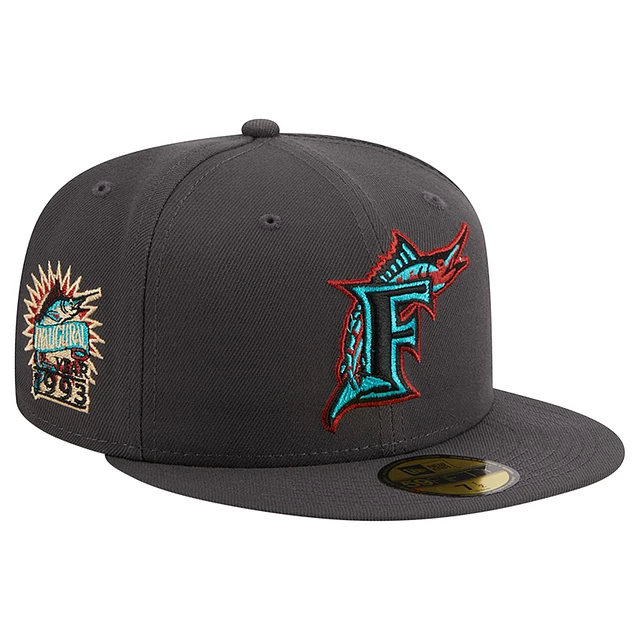 Men's New Era Graphite Florida Marlins Cooperstown Collection Print Undervisor 59FIFTY Fitted Hat