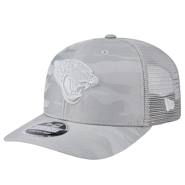Men's New Era Gray Jacksonville Jaguars Adventure Camo Trucker 9SEVENTY Stretch-Snap Adjustable Hat