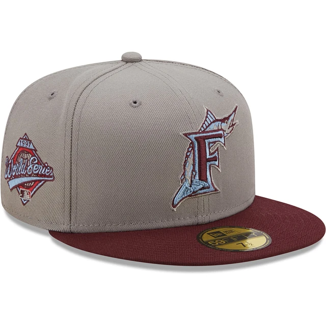 Men's New Era Gray/Maroon Florida Marlins 1997 World Series Misty Blue Undervisor - 59FIFTY Fitted Hat