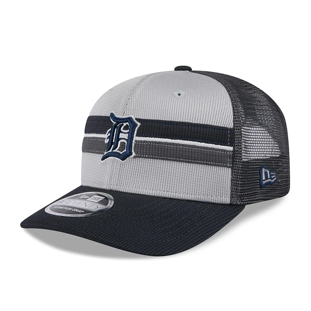 Men's New Era Gray/Navy Detroit Tigers 2025 Batting Practice 9SEVENTY Stretch-Snap Trucker Hat