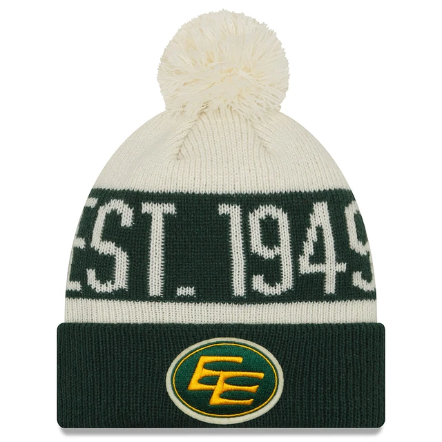 Men's New Era Green Edmonton Elks Turf Traditions - Cuffed Pom Knit Hat
