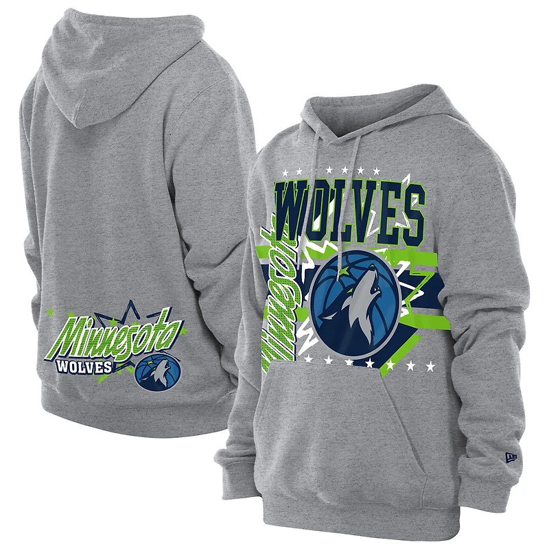 Men's New Era Heather Gray Minnesota Timberwolves Injection Sport Classics Fleece Hoodie in Vernon, BC