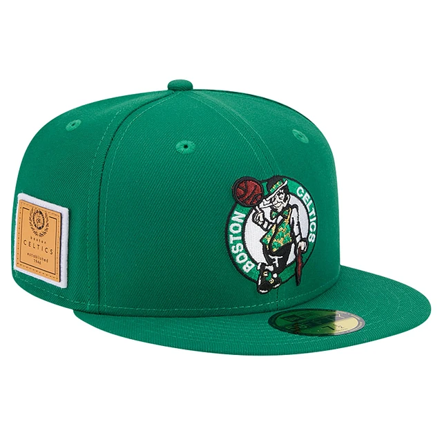 Men's New Era Kelly Green Boston Celtics Court Sport Leather Applique 59FIFTY Fitted Hat