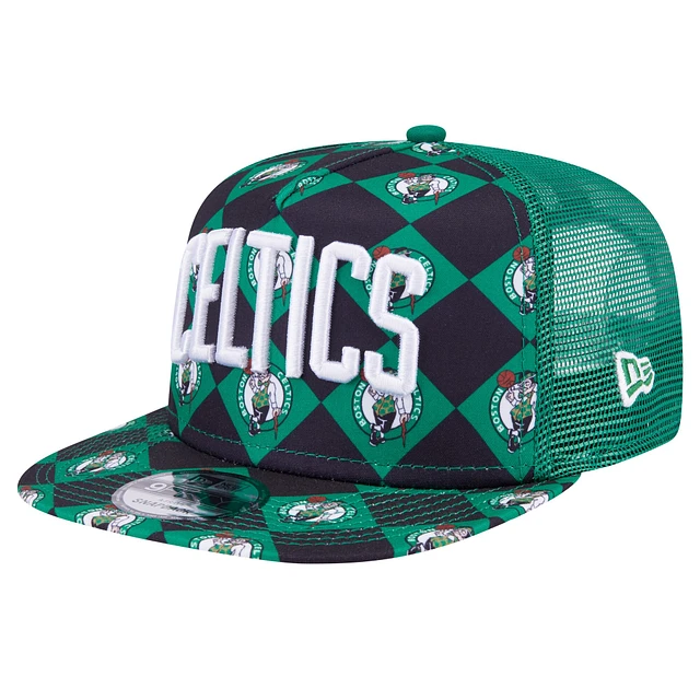 Men's New Era Kelly Green Boston Celtics Seeing Diamonds A-Frame Trucker 9FIFTY Snapback Hat