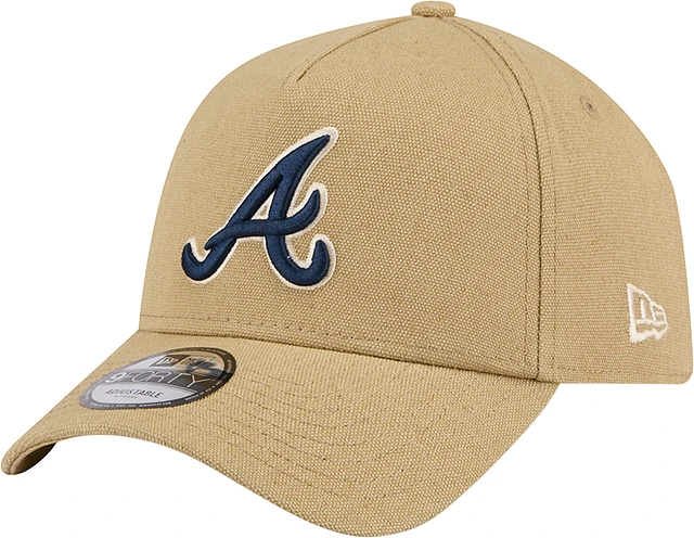 Men's New Era Khaki Atlanta Braves Logo Essentials 9FORTY A-Frame Adjustable Hat