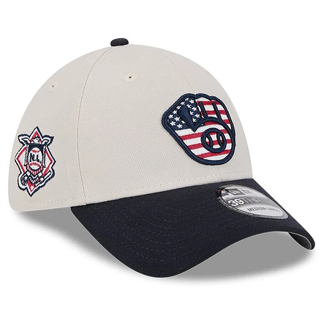 Men's New Era Khaki/Black Milwaukee Brewers 2024 Fourth of July 39THIRTY Flex Hat