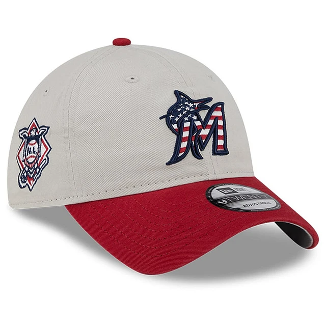 Men's New Era Khaki/Red Miami Marlins 2024 Fourth of July 9TWENTY Adjustable Hat