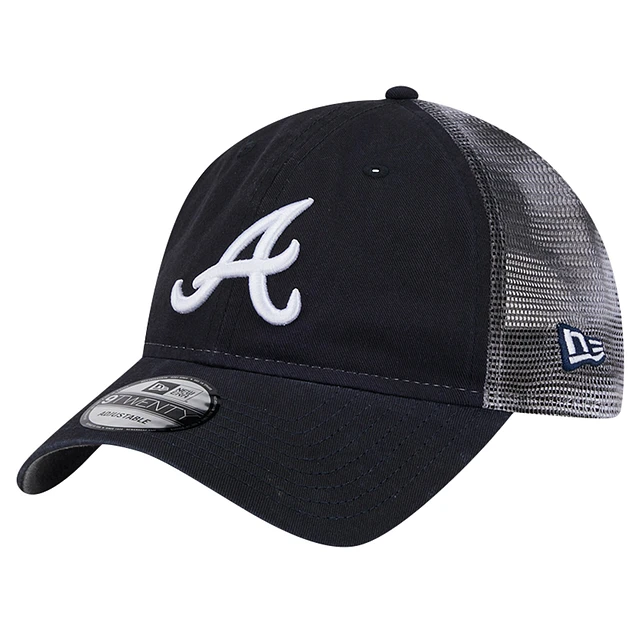 Men's New Era Navy Atlanta Braves Team Slick Trucker 9TWENTY Adjustable Hat