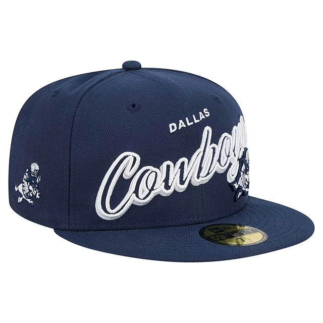Men's New Era Navy Dallas Cowboys Script Sided 59FIFTY Fitted Hat