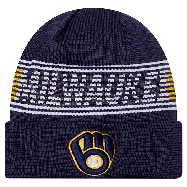 Men's New Era Navy Milwaukee Brewers Authentic Collection Cuffed Knit Hat