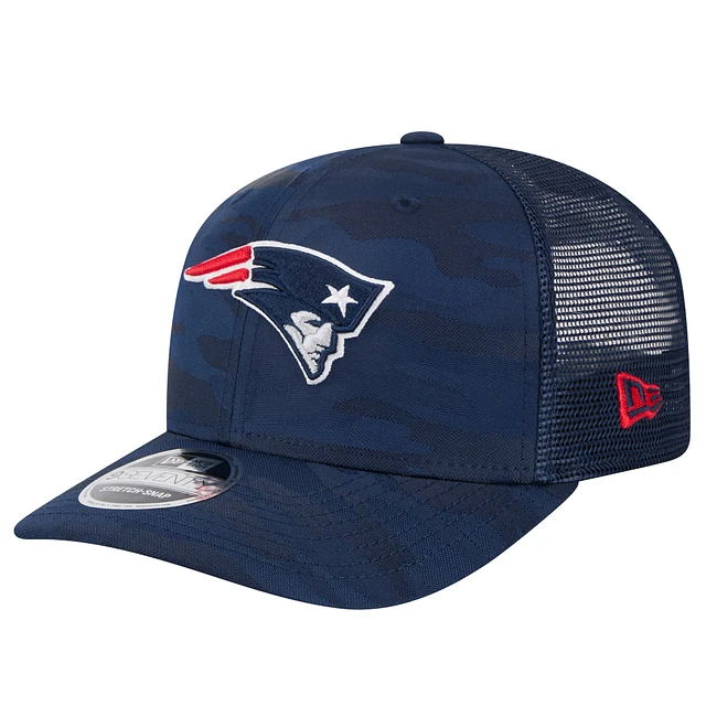 Men's New Era Navy New England Patriots Adventure Camo Trucker 9SEVENTY Stretch-Snap Adjustable Hat