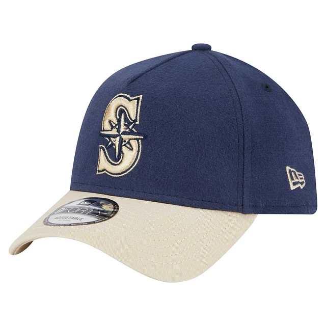 Men's New Era Navy Seattle Mariners Moleskin Crown A-Frame 9FORTY Adjustable Hat