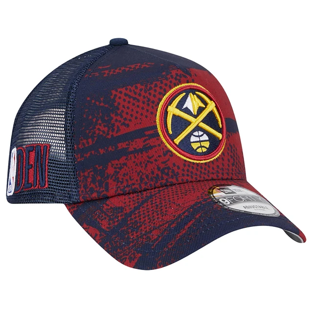 Men's New Era Navy/Red Denver Nuggets Tip Off A-Frame Trucker 9FORTY Adjustable Hat