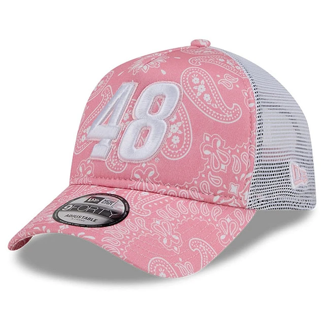 Men's New Era Pink Alex Bowman 9FORTY A-Frame Trucker Paisley Adjustable Hat