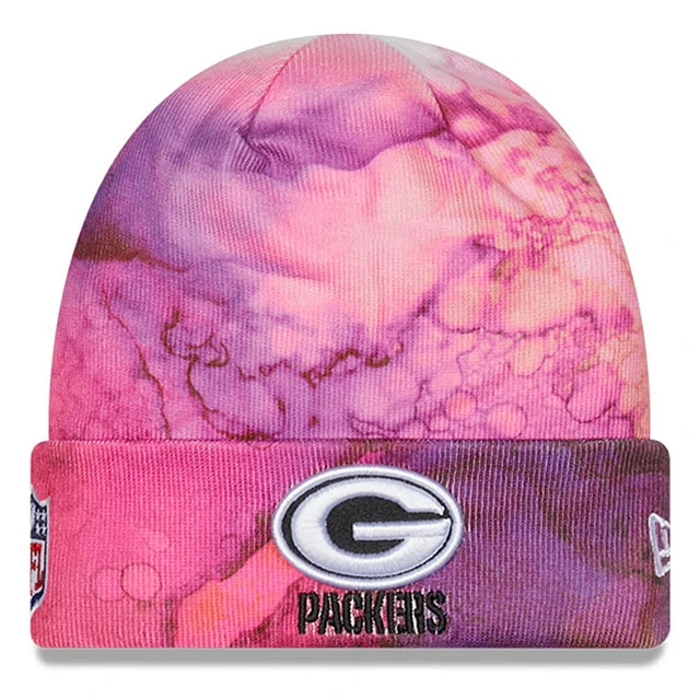 Men's New Era Pink Green Bay Packers 2022 NFL Crucial Catch - Cuffed Knit Hat