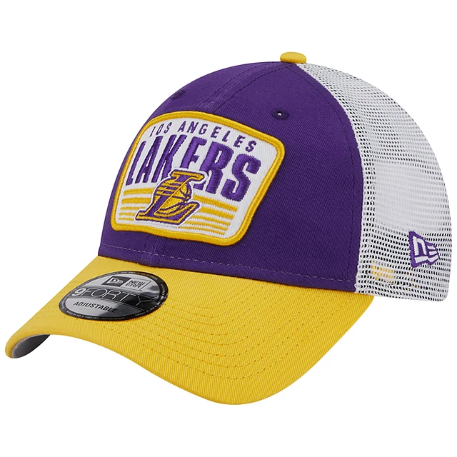 Men's New Era Purple/Gold Los Angeles Lakers Two-Tone Patch 9FORTY Trucker Snapback Hat