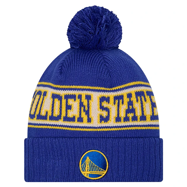 Men's New Era Royal Golden State Warriors Throwback Retro Cuffed Knit Hat with Pom