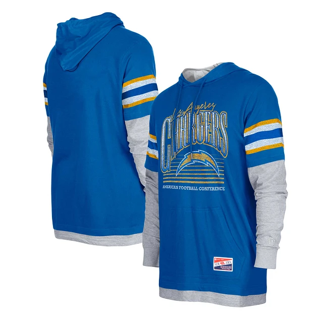 Men's New Era Royal Los Angeles Chargers Twofer Long Sleeve Hooded T-Shirt