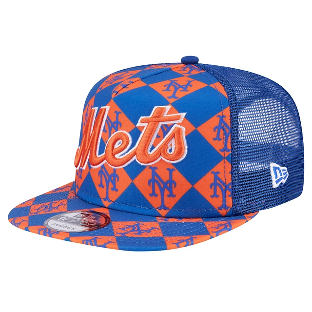 Men's New Era Royal New York Mets Seeing Diamonds A-Frame Trucker 9FIFTY Snapback Hat
