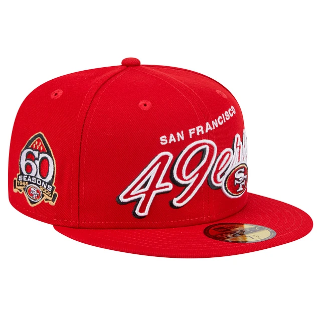 Men's New Era Scarlet San Francisco 49ers Script Sided 59FIFTY Fitted Hat