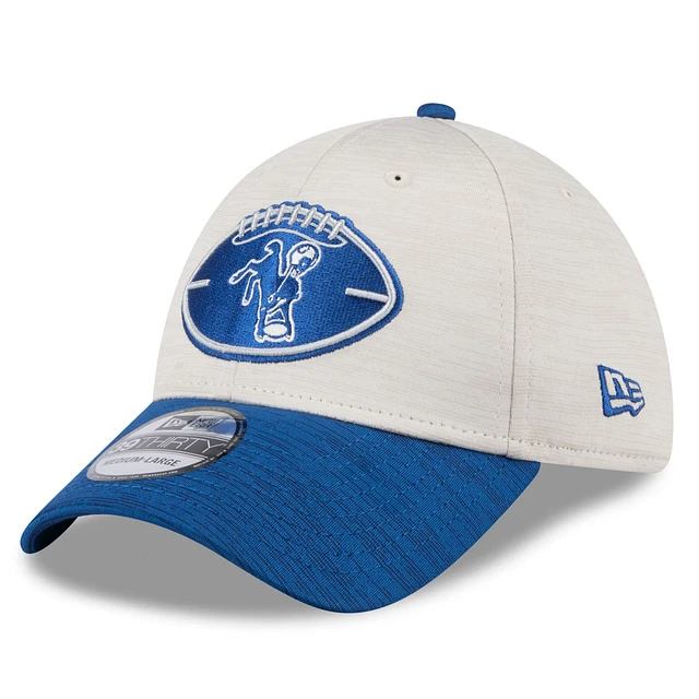 Men's New Era Stone/Royal Indianapolis Colts 2024 Sideline Historic 39THIRTY Flex Hat