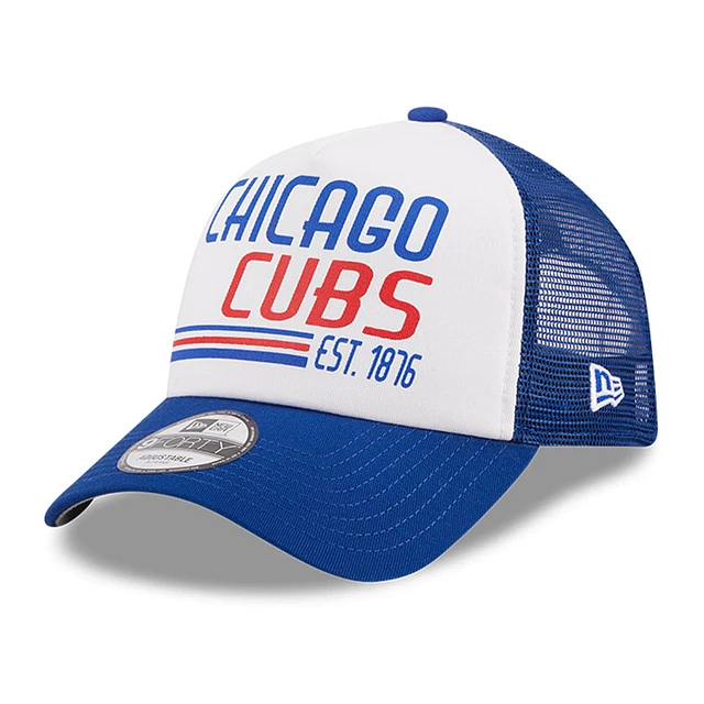 Men's New Era White/Royal Chicago Cubs Stacked A-Frame Trucker 9FORTY Adjustable Hat