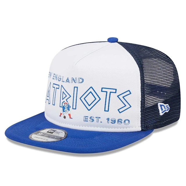 Men's New Era White/Royal New England Patriots Gridiron Classics Banger 9FIFTY Trucker Snapback Hat