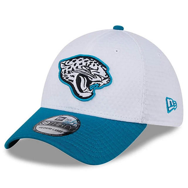 Men's New Era White/Teal Jacksonville Jaguars 2024 NFL Training Camp 39THIRTY Flex Hat