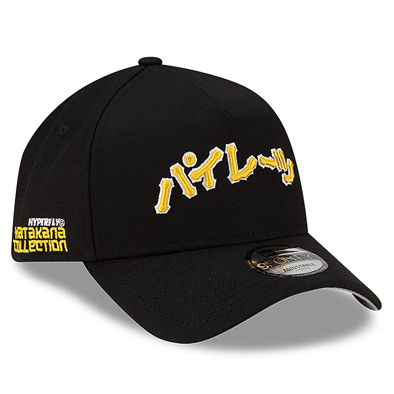 Show off your Pittsburgh Pirates fandom with this A-Frame 9FORTY Adjustable Hat. Part of New Era's collaboration with Hyperfly, it showcases the team's branding in Japanese Katakana characters for a cultural intersection of eastern-influenced style and American sports. The embroidered graphics with raised details add a touch of sophistication to the classic fitted silhouette. Designed with a high-profile pinched shape and an unmistakable look, this hat provides both comfort and style so you can feel good wherever you rep your Pittsburgh Pirates.