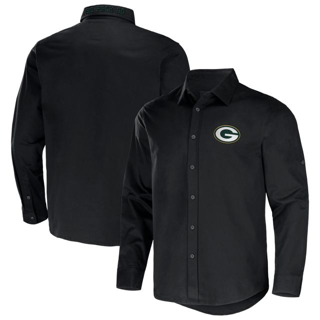Men's NFL x Darius Rucker Collection by Fanatics Black Green Bay Packers Convertible Twill Long Sleeve Button-Up Shirt