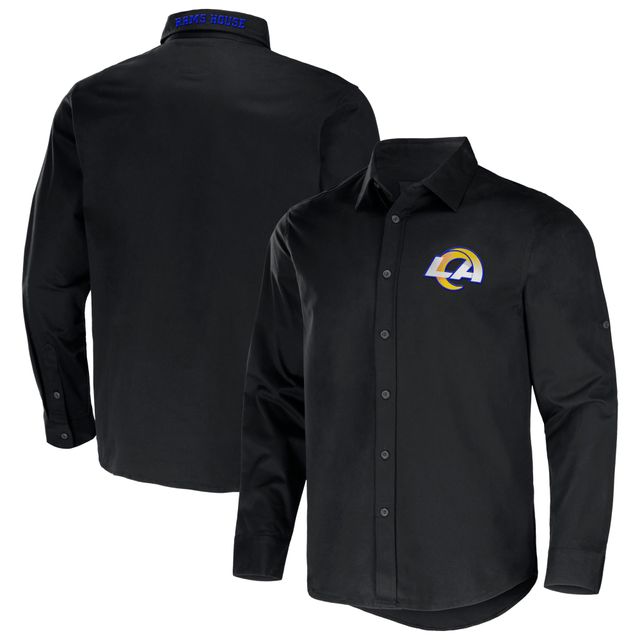 Men's NFL x Darius Rucker Collection by Fanatics Black Los Angeles Rams Convertible Twill Long Sleeve Button-Up Shirt