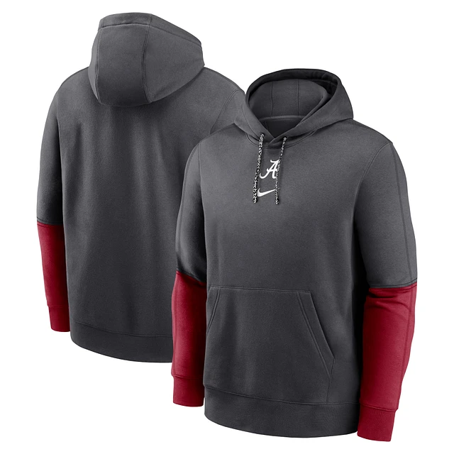 Men's Nike Anthracite/Crimson Alabama Crimson Tide 2024 Sideline Club Pullover Hoodie