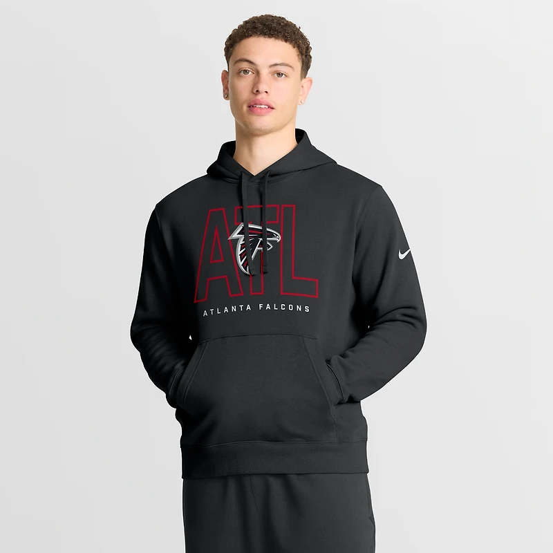 Nike provides Atlanta Falcons fans everyday comfort with this Busted Play Club Fleece Pullover Hoodie. It's crafted from cozy fleece lining and breathable French terry lining. An adjustable hood and pouch pocket offer additional coverage when the temp drops, making this Atlanta Falcons hoodie a wardrobe staple.